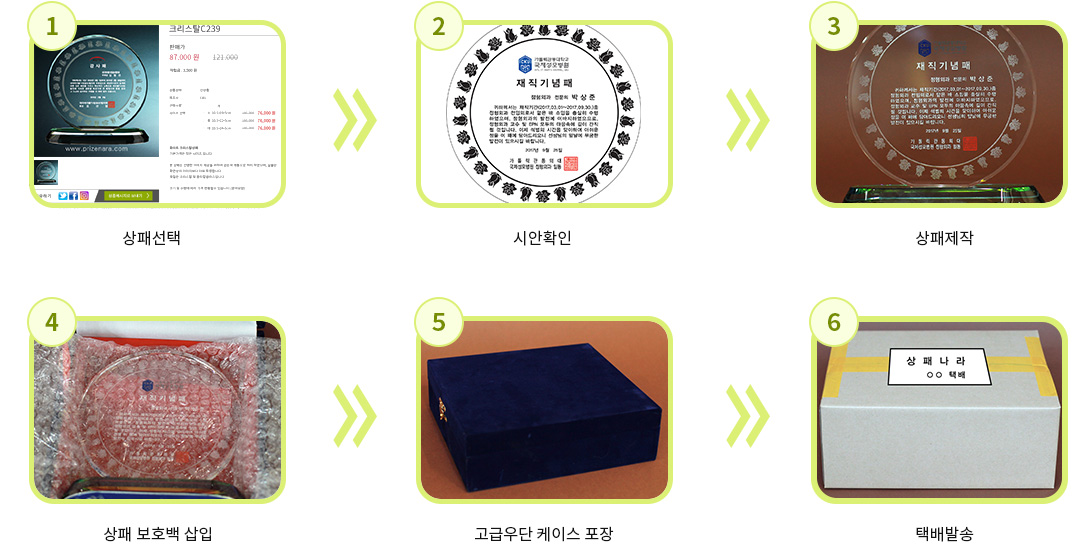 상패작업의 진행과정은 다음과 같습니다.